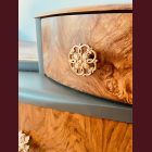 This was a labour of love — a piece that began as a weary 1930s dresser and became a statement of modern craftsmanship wrapped in vintage grace. The walnut and walnut burl veneers were carefully stripped and refinished to reveal their warm, organic patterns.