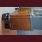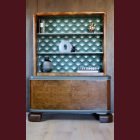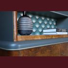 The burl has been carefully restored and finished with Osmo Hardwax oil, bringing the grain back to life and giving it depth again. The exterior is painted in Wellington — a muted grey-green with warm, almost bronze undertones that sits somewhere between classic and contemporary without trying too hard.