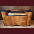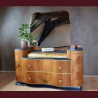 This Art Deco dressing table had good bones, but it was hiding under a thick glossy finish that completely muddied the walnut grain. Once that came off, the wood finally got to do what it wanted to do all along — and it turns out it’s rather gorgeous.