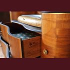 There’s a lovely little detail in the small side drawers: the veneer runs horizontally on the top part and vertically on the rest of the drawer. One of those subtle design touches that you only notice after looking twice.