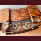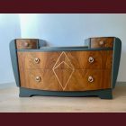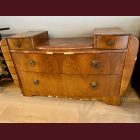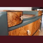 This was a labour of love — a piece that began as a weary 1930s dresser and became a statement of modern craftsmanship wrapped in vintage grace. The walnut and walnut burl veneers were carefully stripped and refinished to reveal their warm, organic patterns.