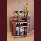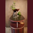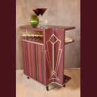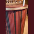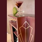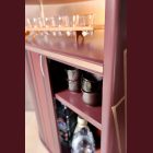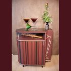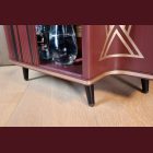 Vintage Auping nightstand, fully upcycled into a compact home bar. Built from solid MDF with its original PVC sliding door, this piece has been repainted in Flexa “Rabarber”, a deep rhubarb red with just a hint of warmth. The sliding door now features vertical stripes in shades of rhubarb and black, giving it a simple but striking look. The stripes were painted by hand to create a bit of depth and movement, while a fine gold accent ties everything together. It’s a small piece with a lot of personality — subtle, but with enough edge to make it stand out. Use it as a mini bar, bedside table, or small console — it works anywhere you want a bit of colour and shape. Finished with satin Polyvine varnish for everyday durability.