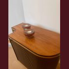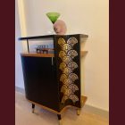 Once humble Auping nightstands, now two little stars that look like they belong in a 1930s jazz club. Painted in deep black with hand-stencilled gold Art Deco motifs, they catch the light just enough to flirt with it. Their compact size hides a bold personality — small footprint, big drama. Finished with Polyvine Decorators Varnish so they shine just the right amount for years to come.
